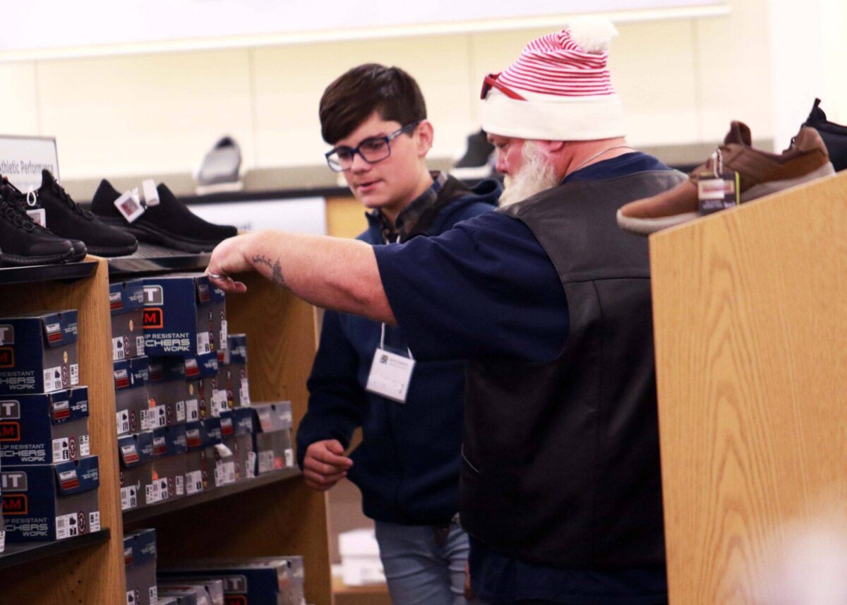 A Lions Club member and a Boys Ranch resident consider shoes.