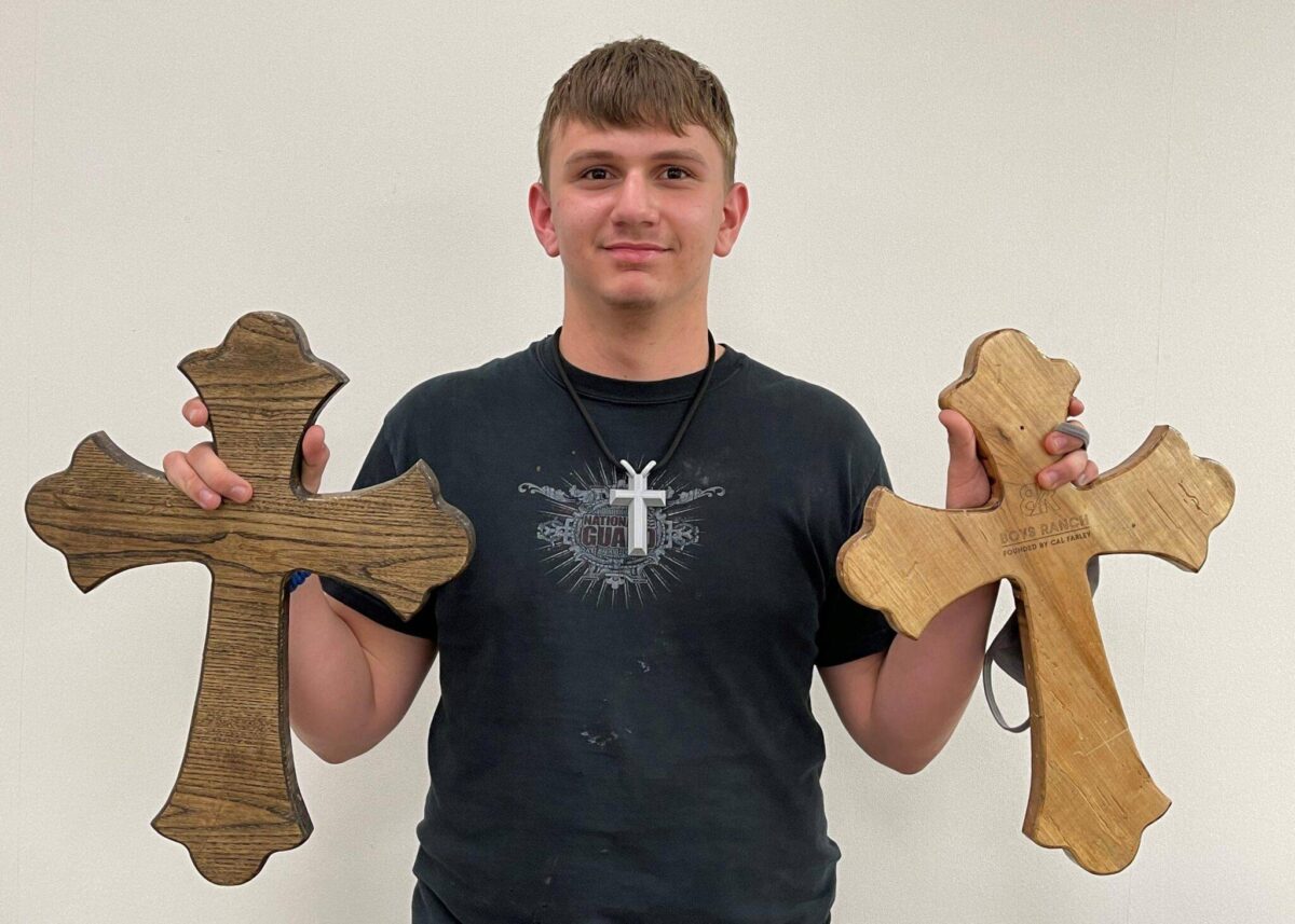 For Blake, learning how to make those crosses as a freshman led to service projects. Since then, he has created beautiful, decorative crosses with plaques that mark special events at Boys Ranch, such as retirements.